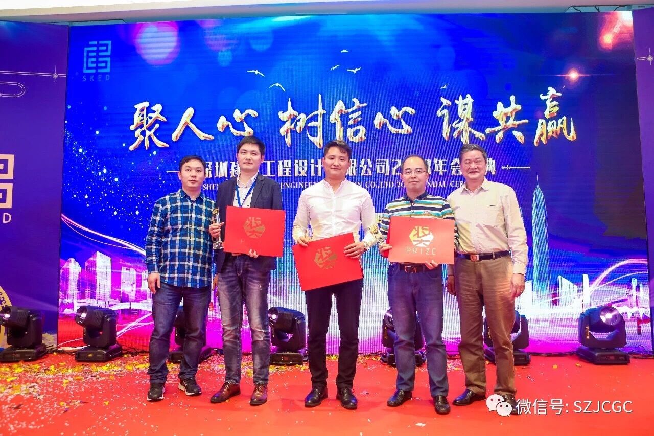 本次年会盛典还颁发了2018年度优秀分公司分所的奖项。四川分公司、云南分公司、茂名分公司获得2018年度优秀分公司分所第三名,第二设计所和安徽分公司获得2018年度优秀分公司分所第二名,最终韶关分公司荣获2018年度优秀分公司分所第一名奖项。建昌公司三位股东分别上台为获奖分支机构颁发证书、奖杯及奖金。