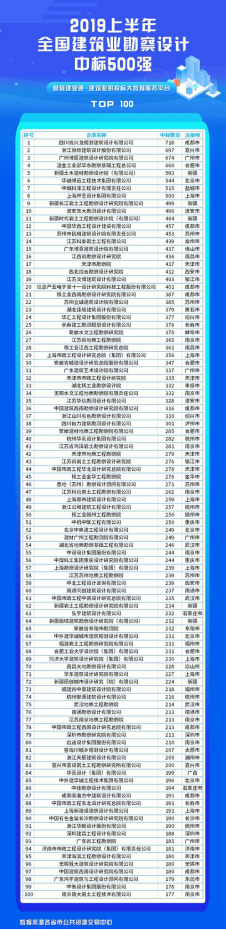 日前,鲁班建业通发布2019上半年全国建筑业勘察设计中标500强,建昌工程设计入围前100强,位列第92名。
